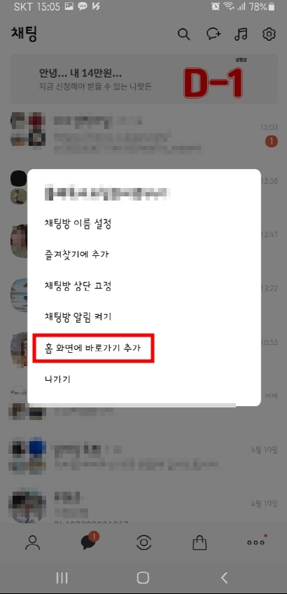 홈 화면에 카카오톡 채팅방 바로가기 만드는 방법