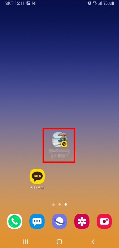 1. 카카오톡 바로가기 아이콘을 길게 터치합니다.