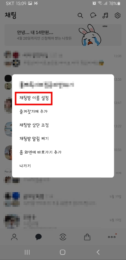 2. '채팅방 이름 설정'을 터치해 줍니다.