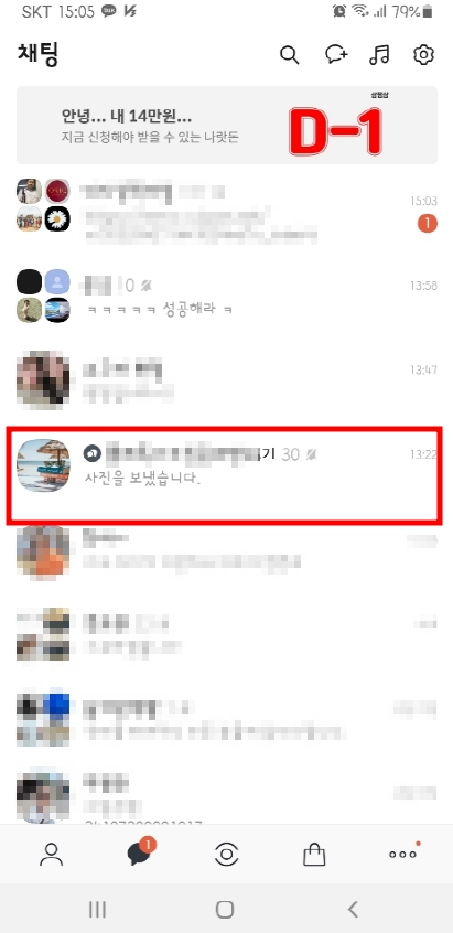2. 원하는 채팅방을 길게 눌러줍니다.