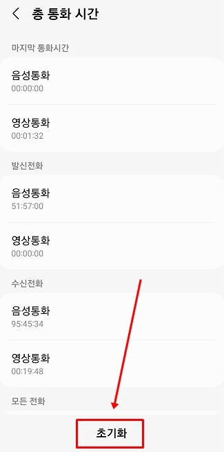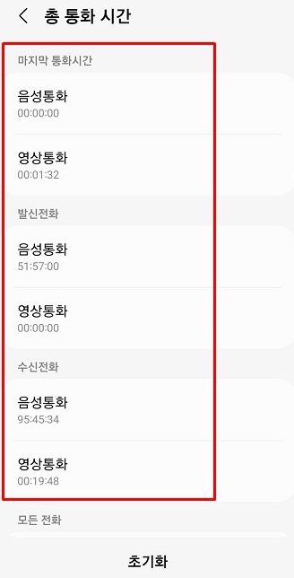 처음 해당 설정을 확인한다면 기록된 통화시간은 스마트폰을