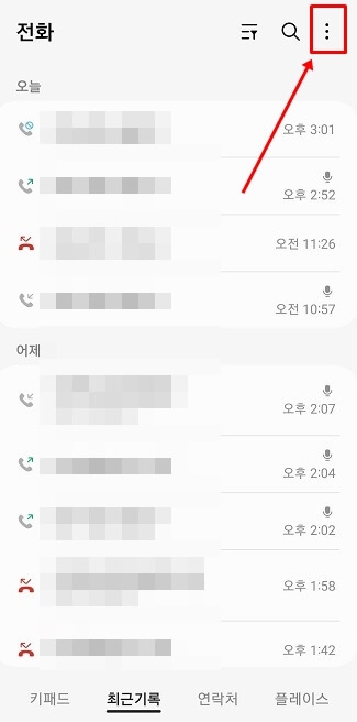 2. 하단의 메뉴 중 '최근 기록'을 터치합니다.